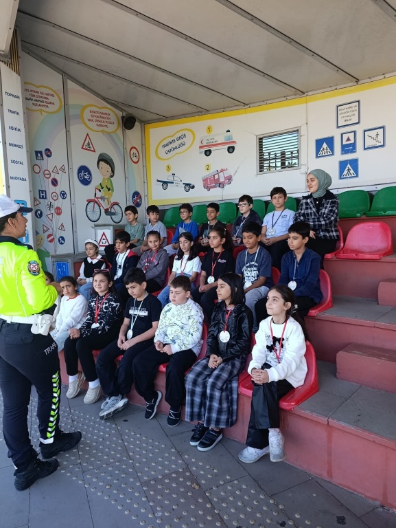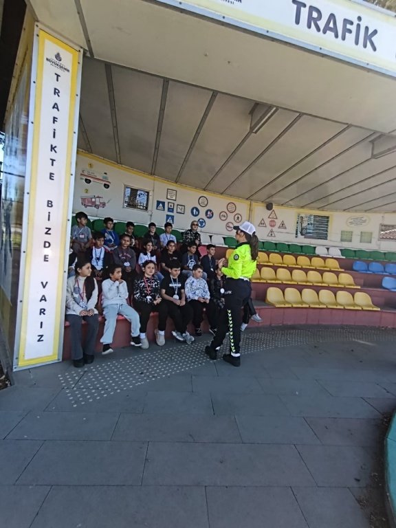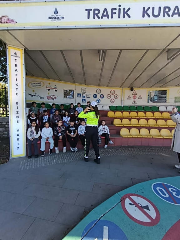 06/10/2025 tarihinde İBB Topkapı Çocuk Trafik Eğitim Parkına yapılan gezide okulumuz 4-J sınıfının öğrencileri teorik olarak aldıkları eğitim sonrasında öğrendiklerini uygulamak için görevli polislerimiz eşliğinde eğitim pistinde performans gösterdiler.
